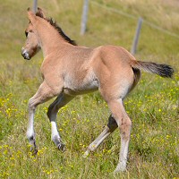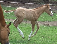 Red dun splashed white colt - Born 28.10.2007 Sire: 'Tribulation' (imp) Dam: 'Up Close N Shameless' 'Super Natural' was purchased by Tania and Dean Boyd of Rakaia in New Zealand. He is now producing lovely natured, talented and pretty foals in New Zealand. |