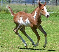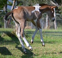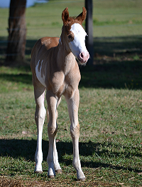 Chestnut Overo gelding - Born 22.08.2017 Sire: 'Just Shameless' (imp/exp/dec) Dam: 'CP She Makes Me Smile' 'Teddy' has found a lovely show and performance home in Armidale. We will sure watch his career with interest. |
