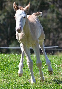 Palomino overo gelding - DOB 04.10.2022 Sire: 'GPS Hez Ice Te' (x One Awesome Moment (imp) Dam: 'Sheza Grand Sensation' (x Just Shameless (imp)) Douglas is adorable, he has the renowned 'Ice Te temperament' in that he is sweet, friendly, and cheeky - together with his stella good looks and brilliant pedigree, he is the complete package. Congratulations to new owner Alexis Larsen. 'Douglas' will be moving to his new home in Queensland, in December |