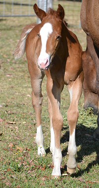 2012 Chestnut Paint Bred filly - Born 25.09.2012 Sire: 'The Big Gun' (USA) Dam: 'Sheza Grand Sensation' 'Jemima' was retained by the stud and has turned into an exeptional broodmare. |