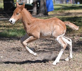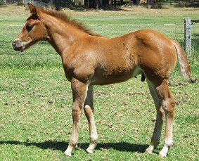 | This lovely mare has proven to be a wonderful mum producing now four strong healthy and correct foals. She is a most unusual colour which we are stuggling to describe ... she is liver chestnut but a most unusual shade. Another of Olivia's daughters she has type, temperament and pedigree to go with her good looks.